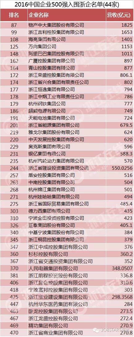 其中物產(chǎn)中大集團(tuán)股份有限公司和浙江吉利控股集團(tuán)有限公司以1825億元、1653億元分列87位和99位。